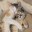 A gentle two‑year‑old rescue with a whisper‑meow and a big heart. Tucks us in every night, then guards the house until morning. Pretends Monkey does not exist.
